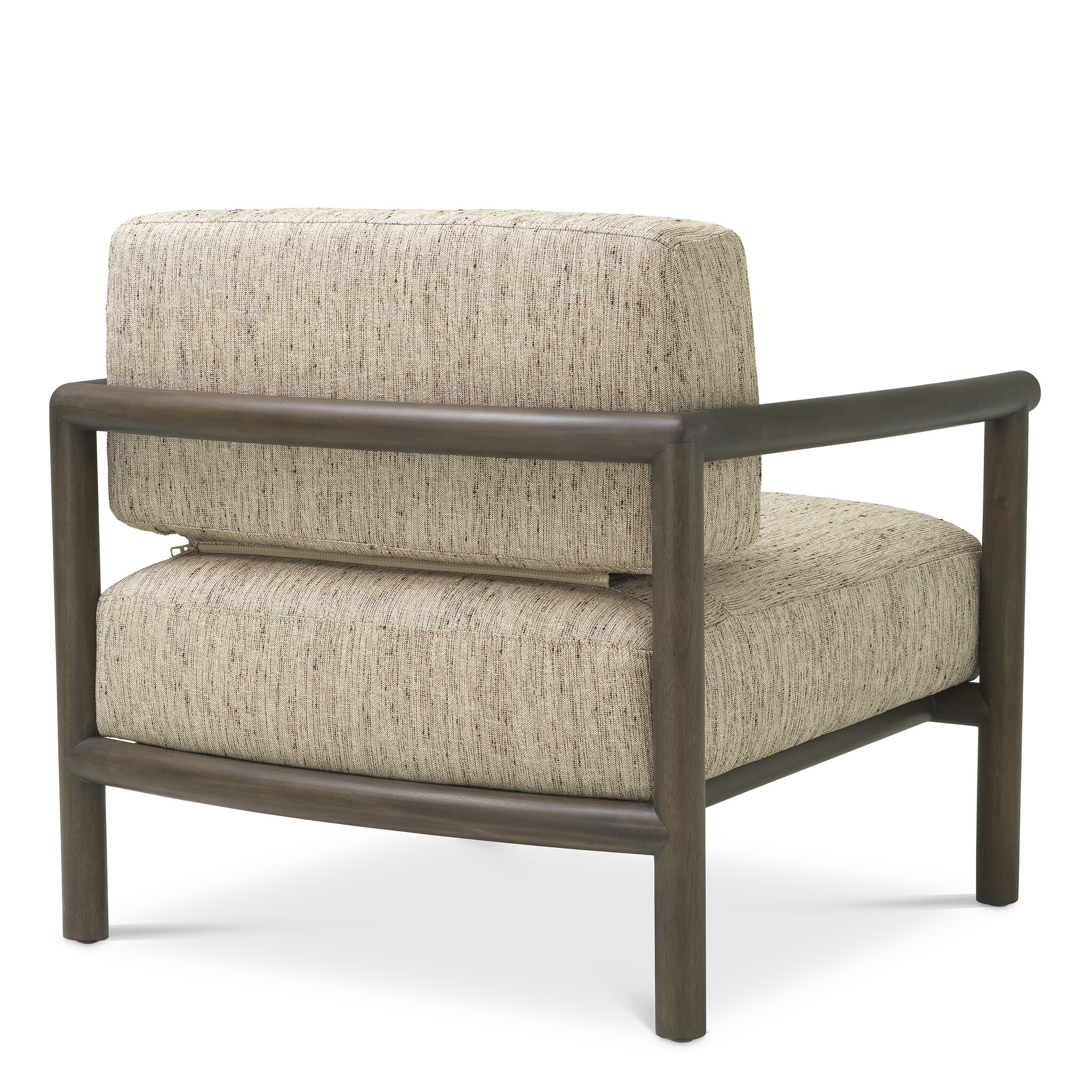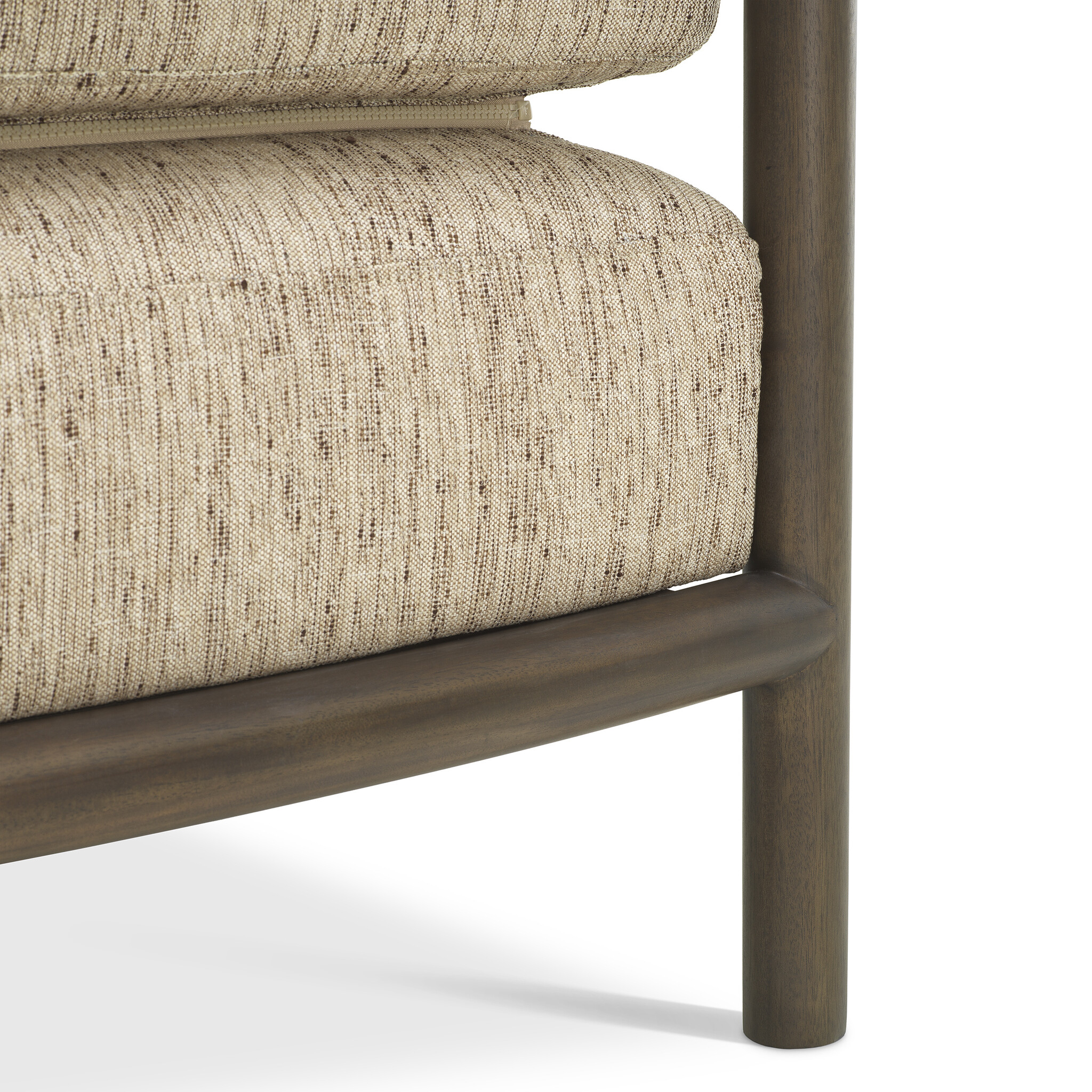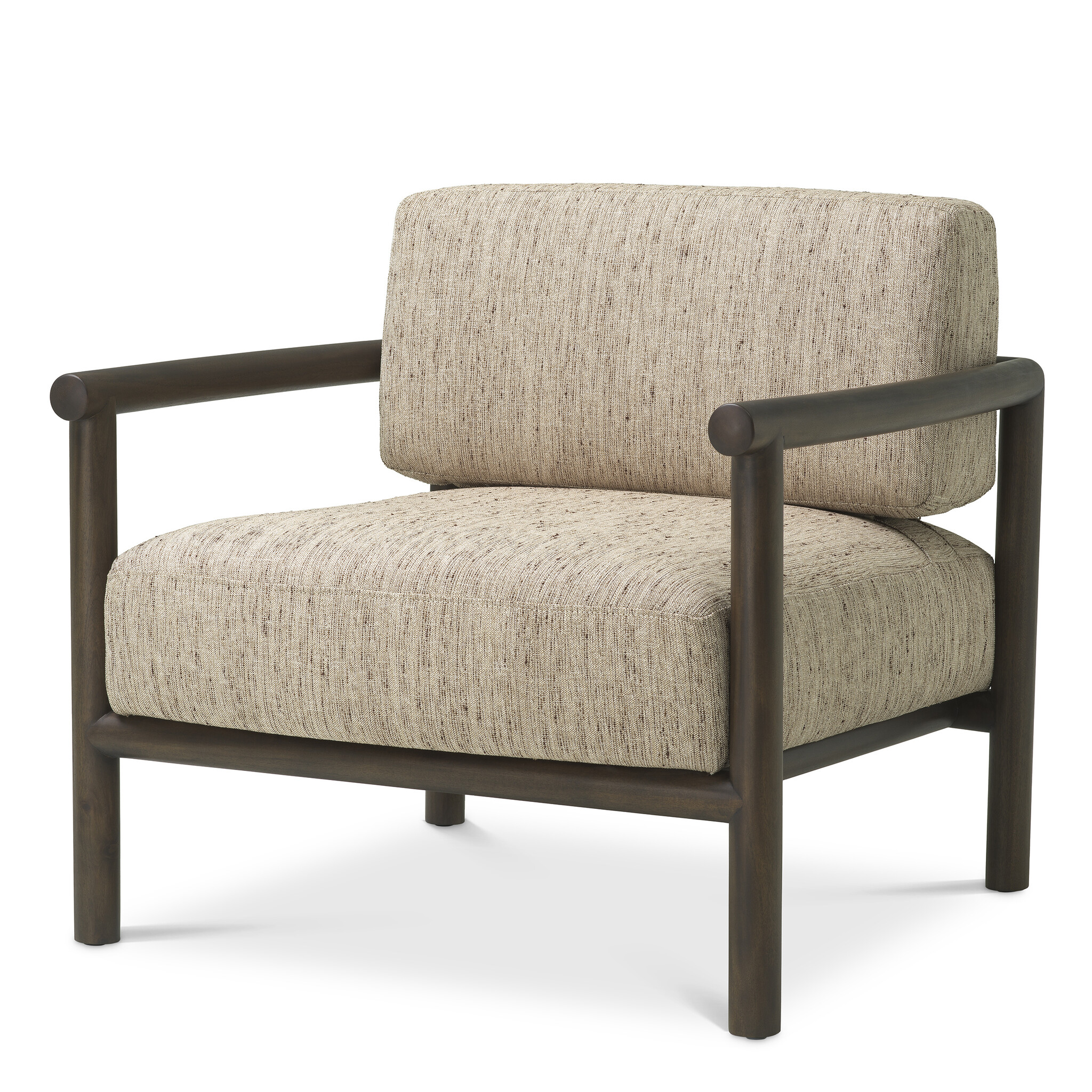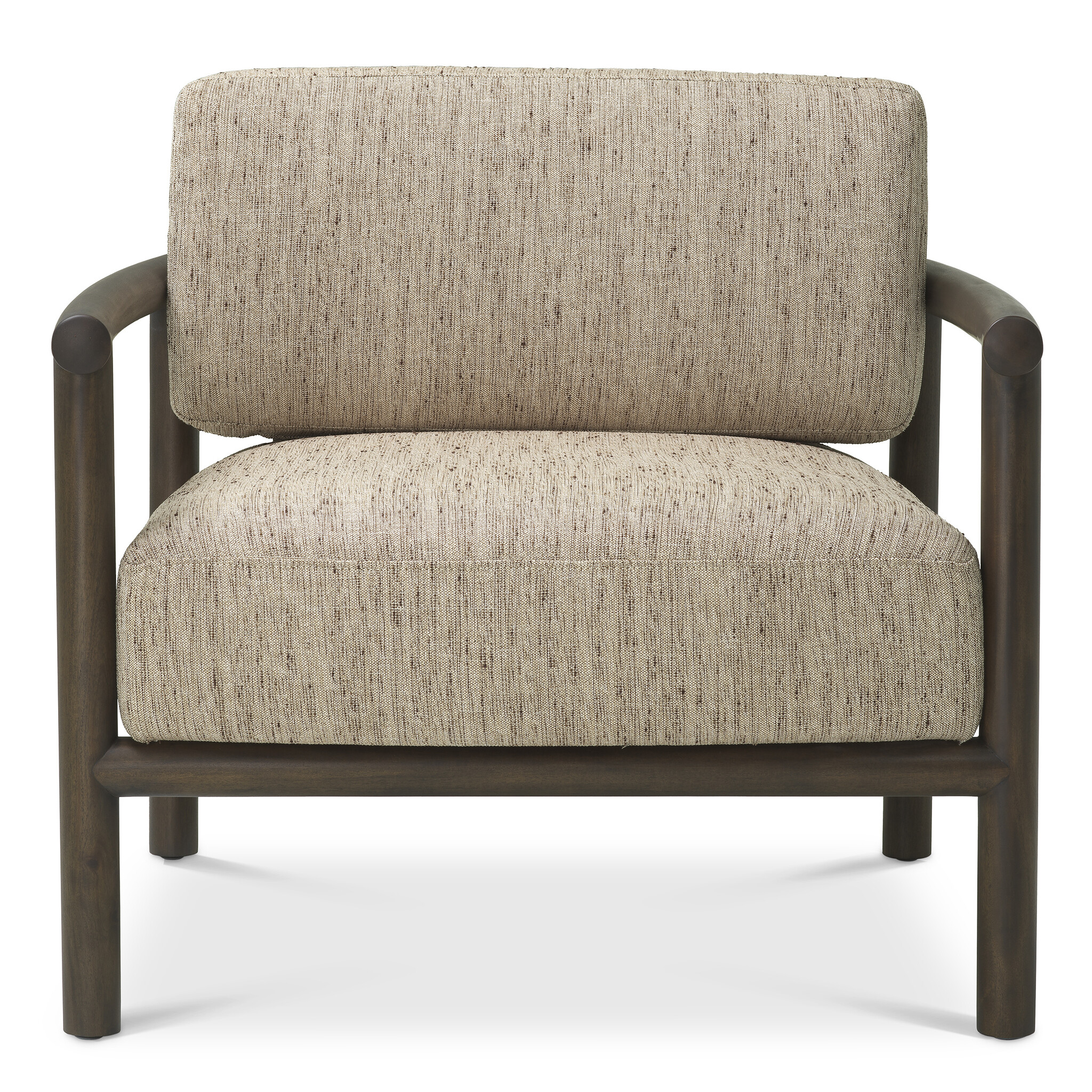 Elevate interiors with the Chair Ombria, featuring a rich mocha mahogany wood frame and Beckett beige upholstery.
