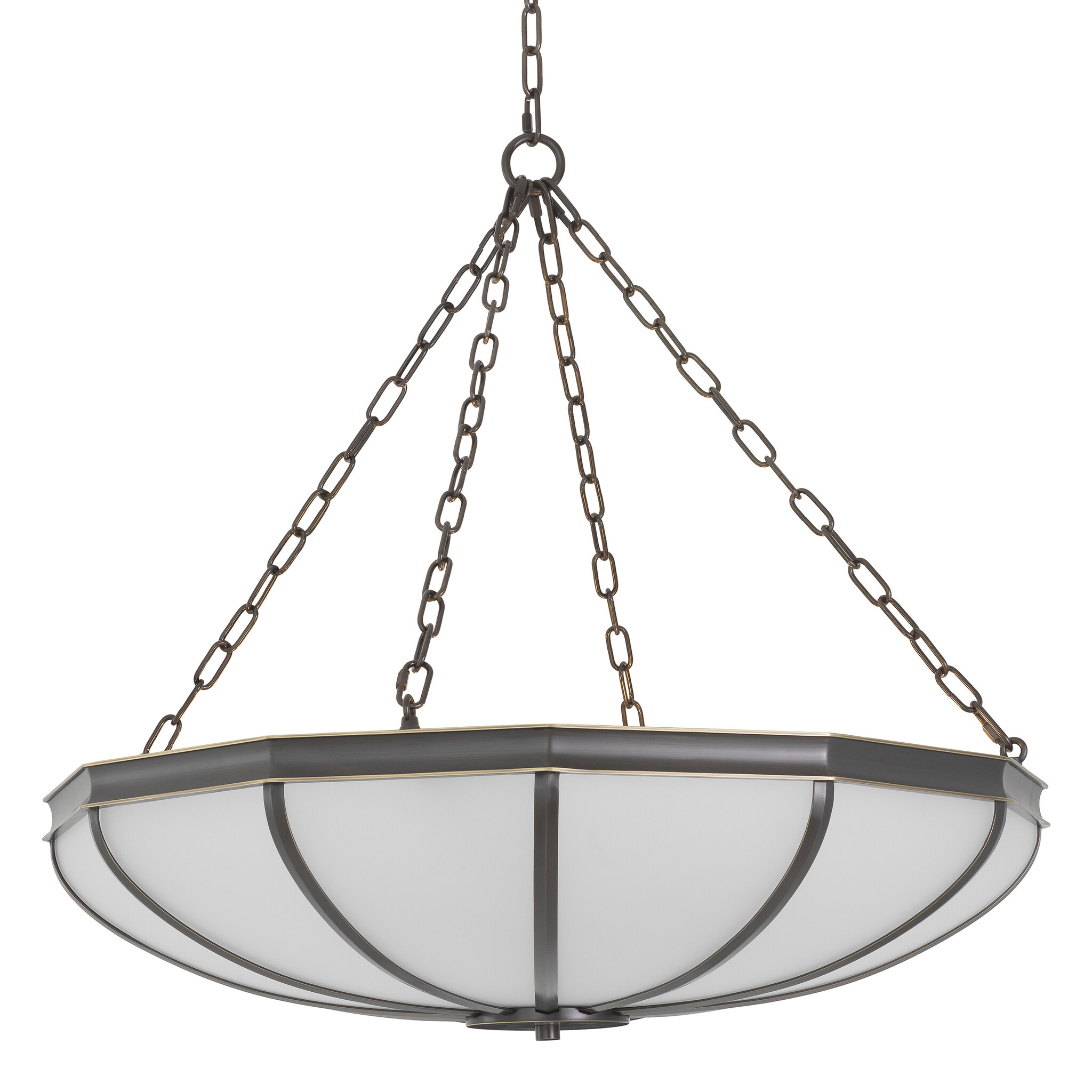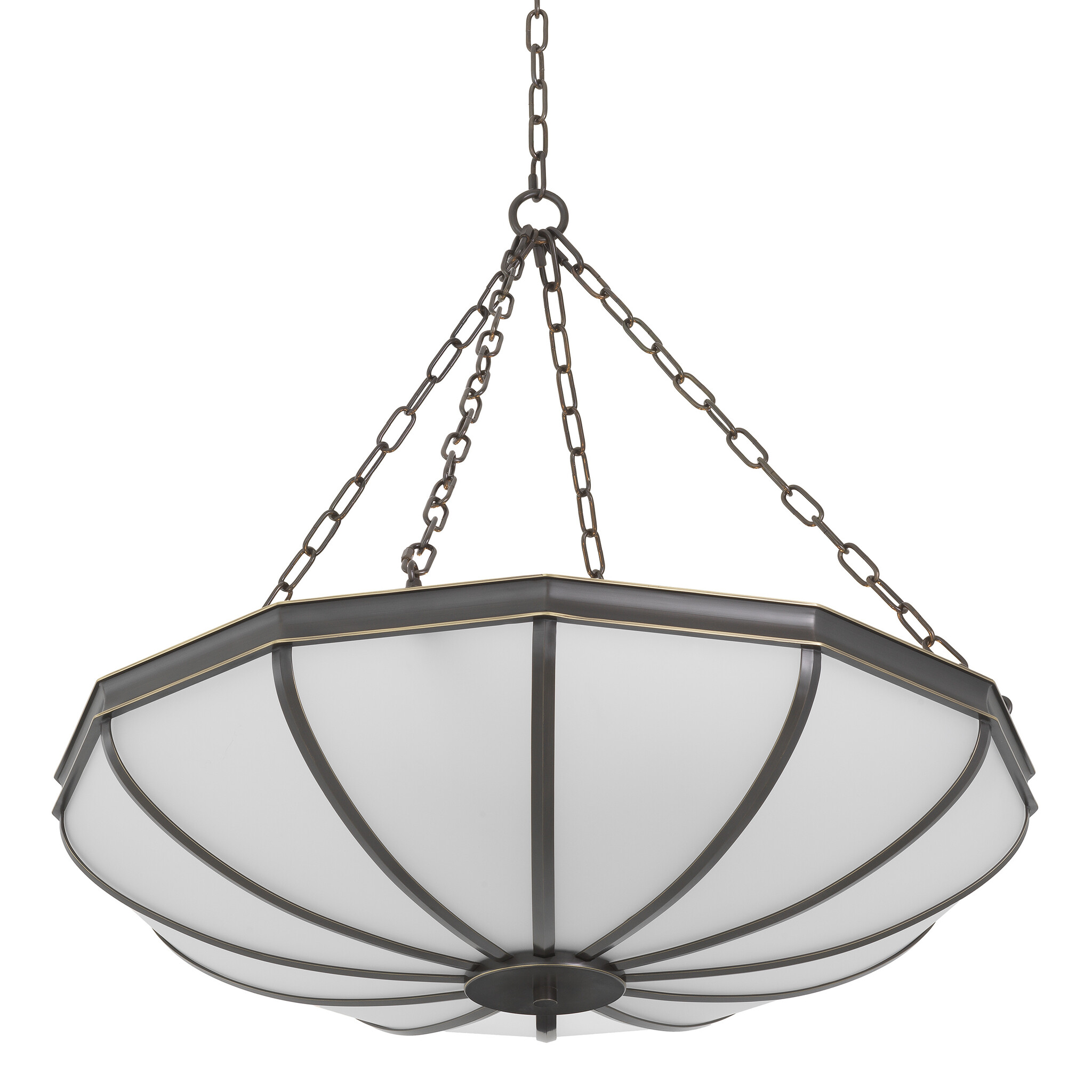 Finished with bronze highlights and elegant white glass, this grand chandelier is inspired by the iconic lighting piece that adorns the Great Hall of The Metropolitan Museum of Art. Its refined form and soft glow reflect the harmony of grandeur and subtlety found throughout the Museum’s interior.