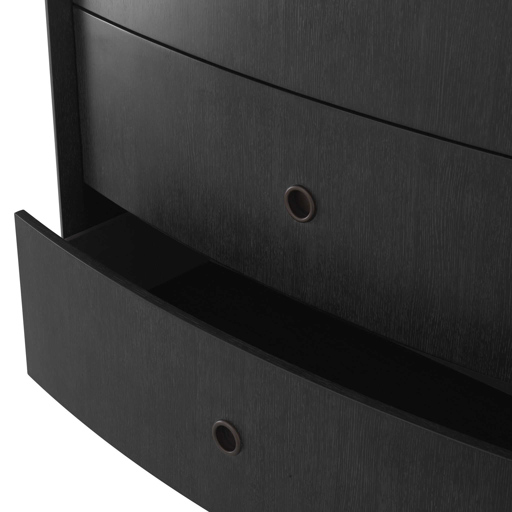 Revel in the refined allure of the Splendora Drawer Dresser, crafted in charcoal grey oak veneer with a bronze finish that deepens its sophisticated charm.