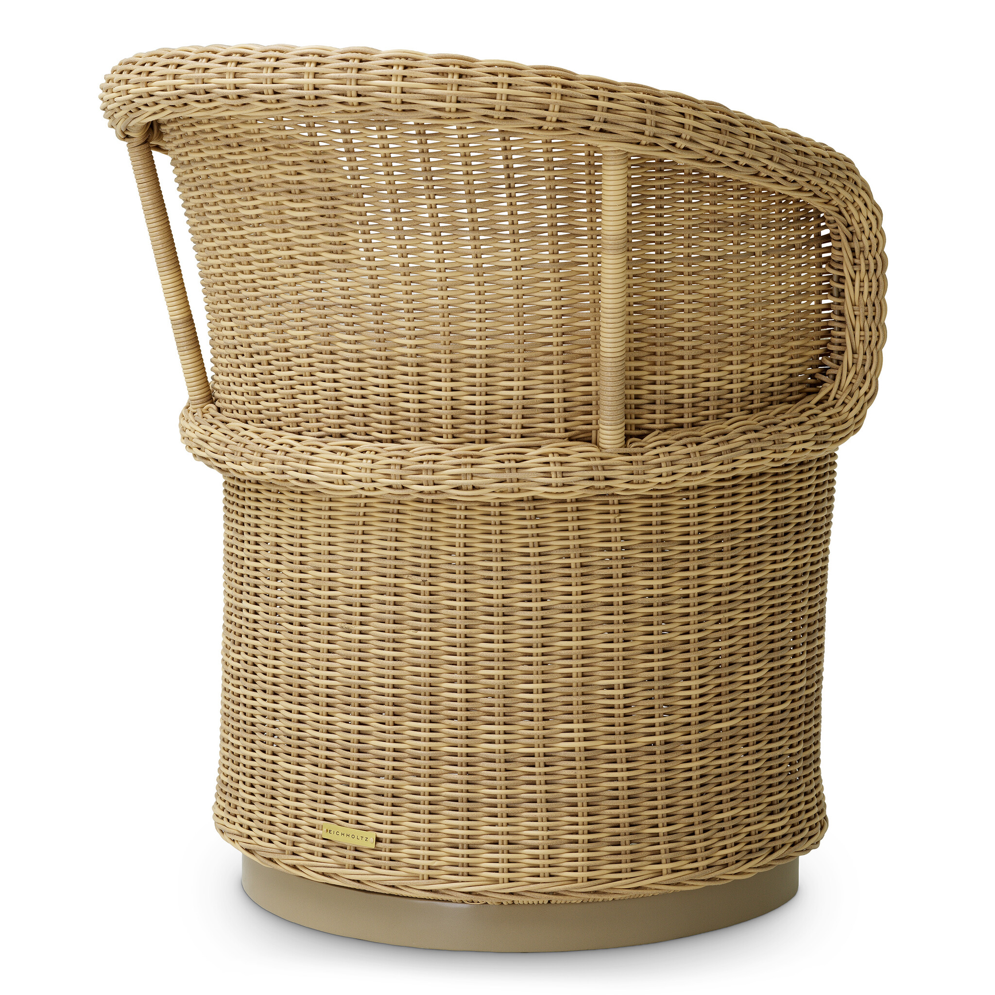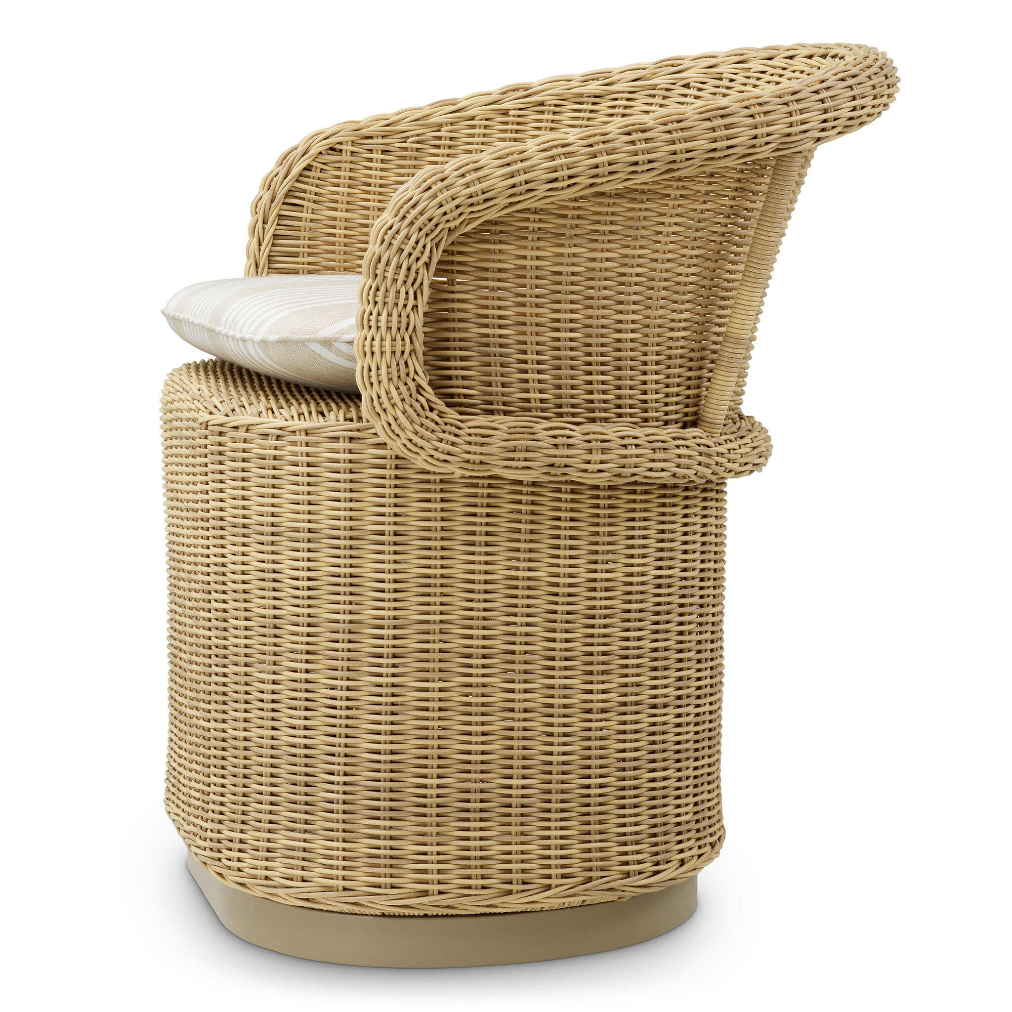 Embodying refined relaxation, the San Remo Outdoor Dining Chair blends durable faux rattan with a serene saville beige fabric.