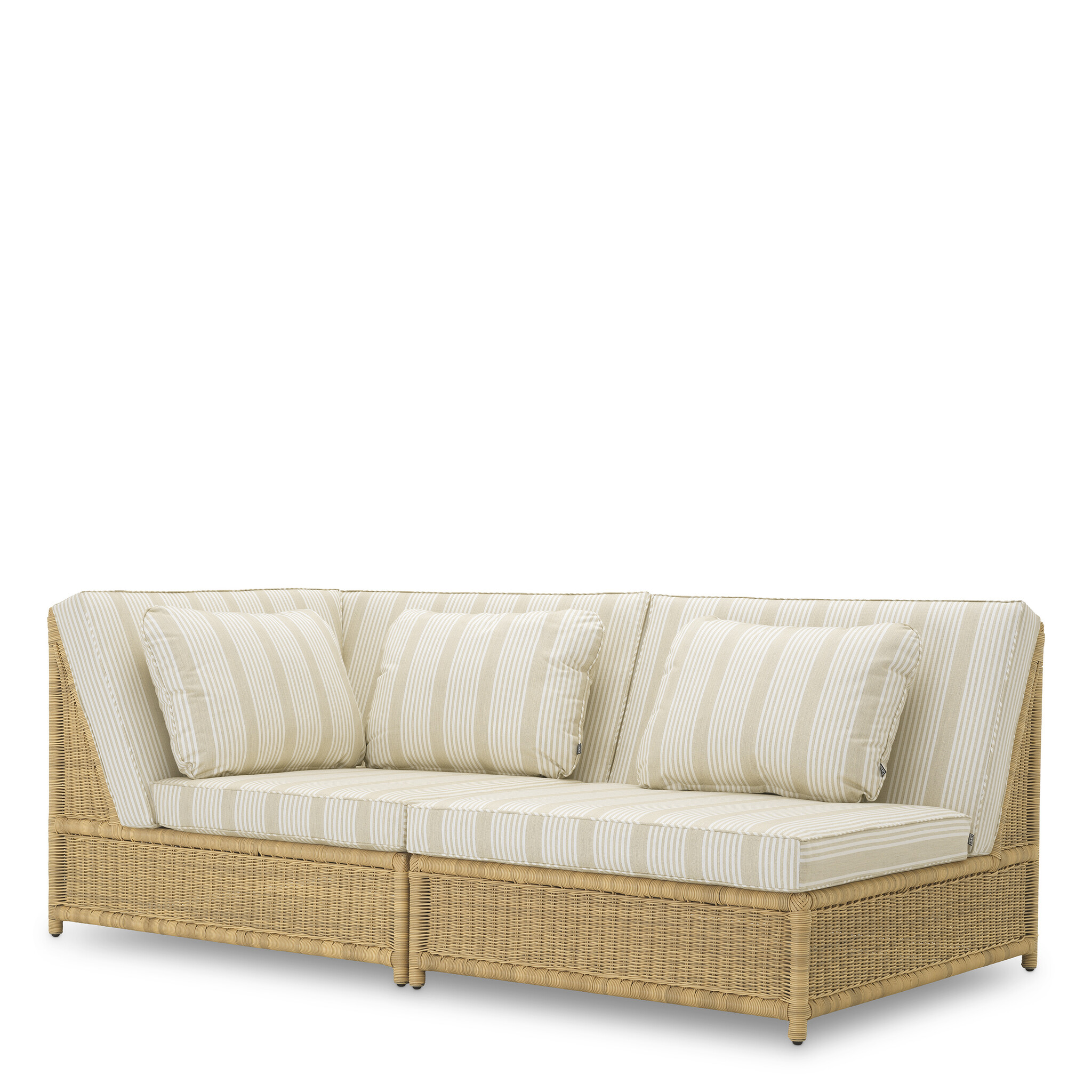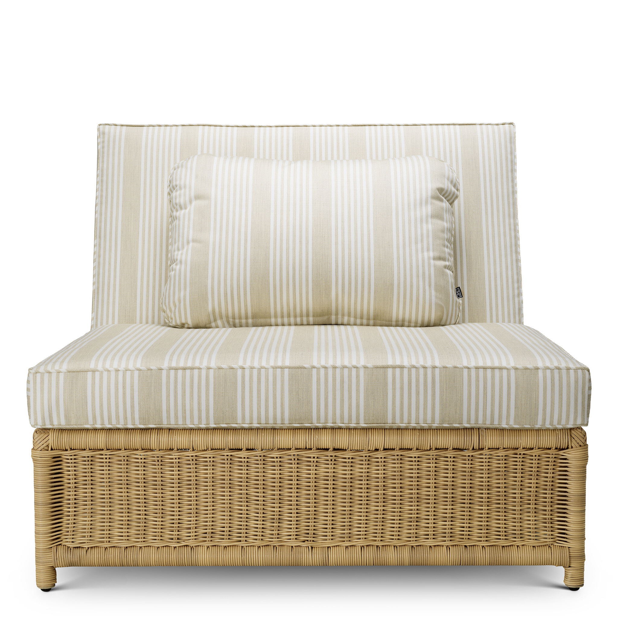 Upholstered in soft Saville beige fabric with subtle stripes, this chair offers exceptional comfort and style. Its modular design provides versatile arrangement options, making it perfect for any patio or garden setting.