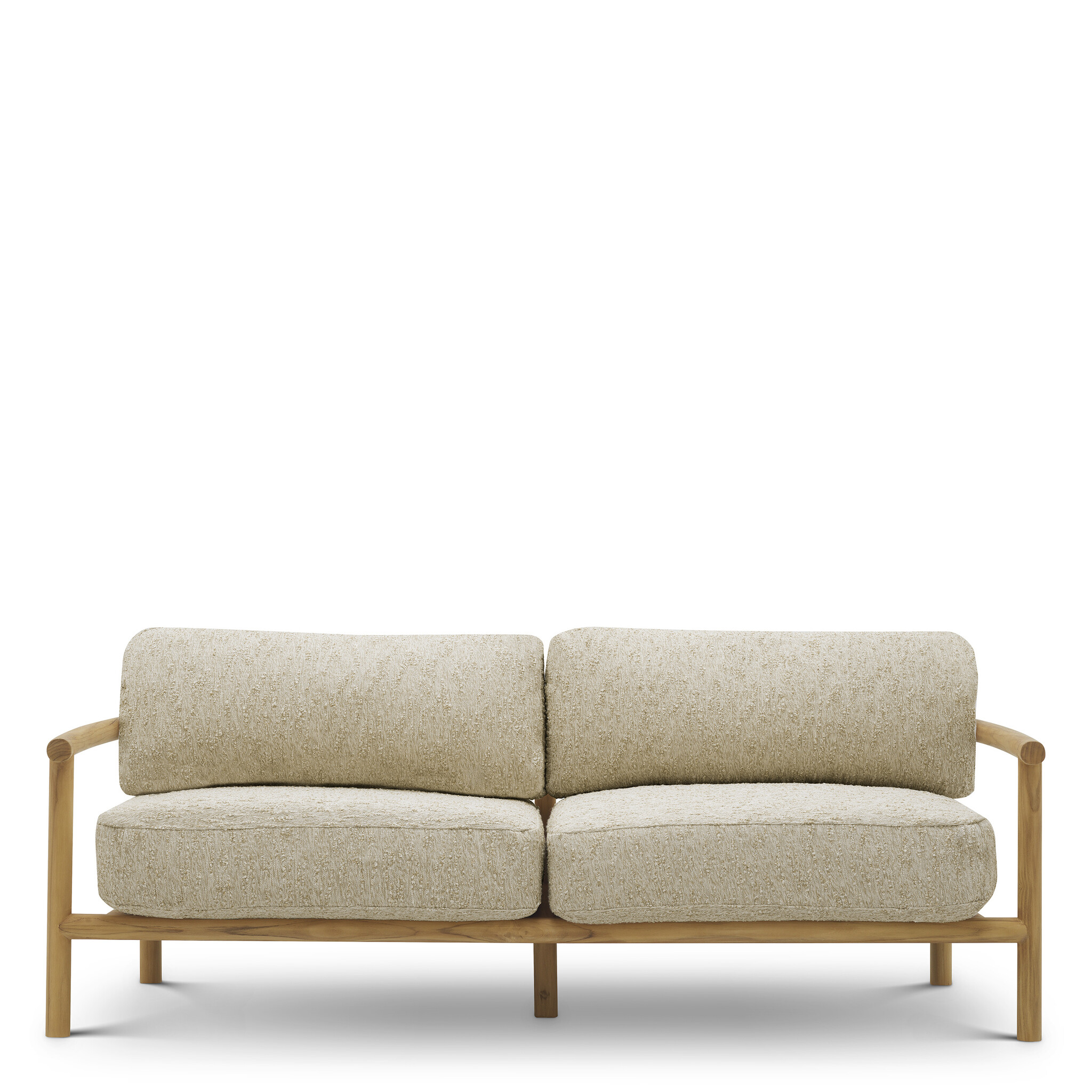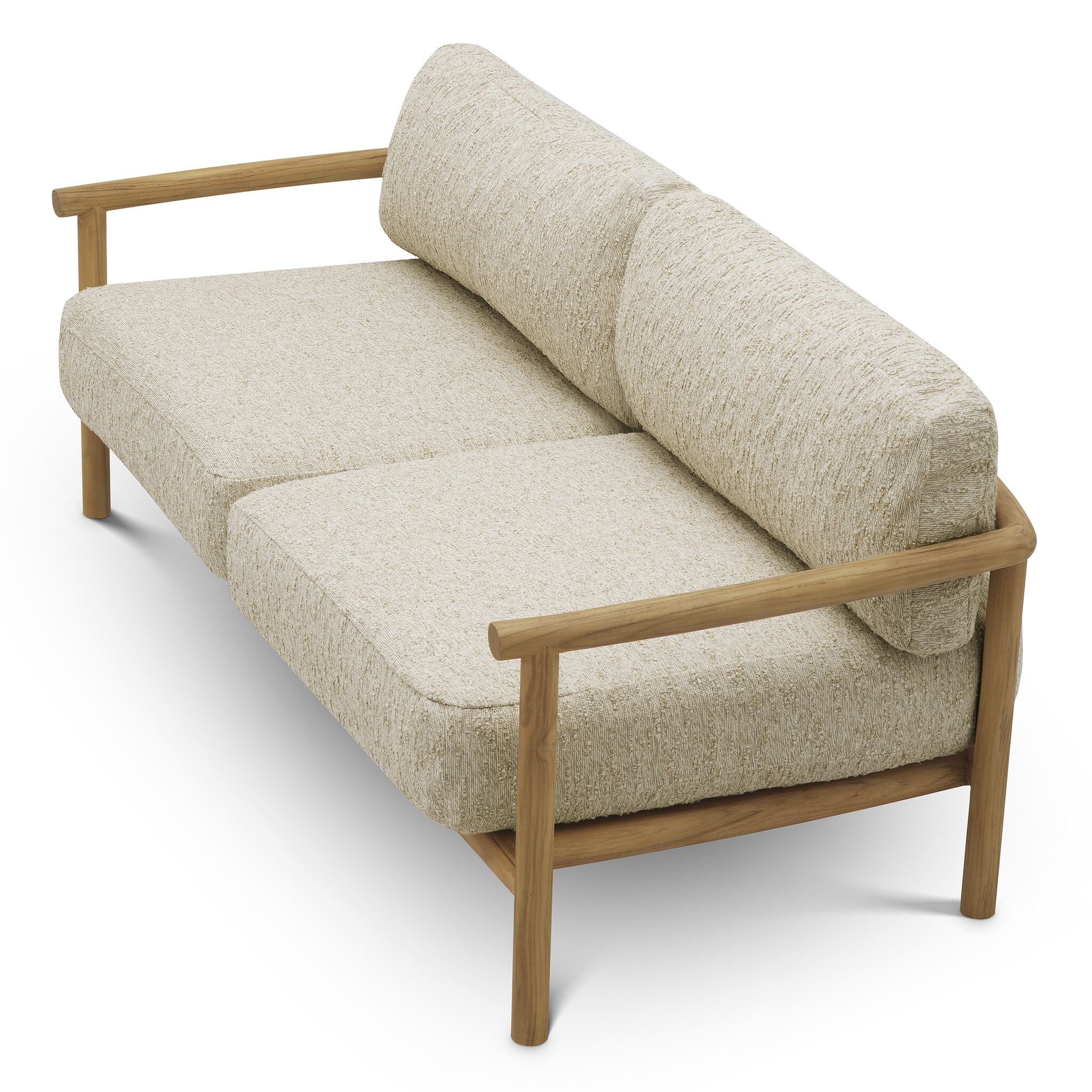 Elevate your outdoor retreat with the Ombria Sofa, featuring a warm natural teak frame in Arden Natural.