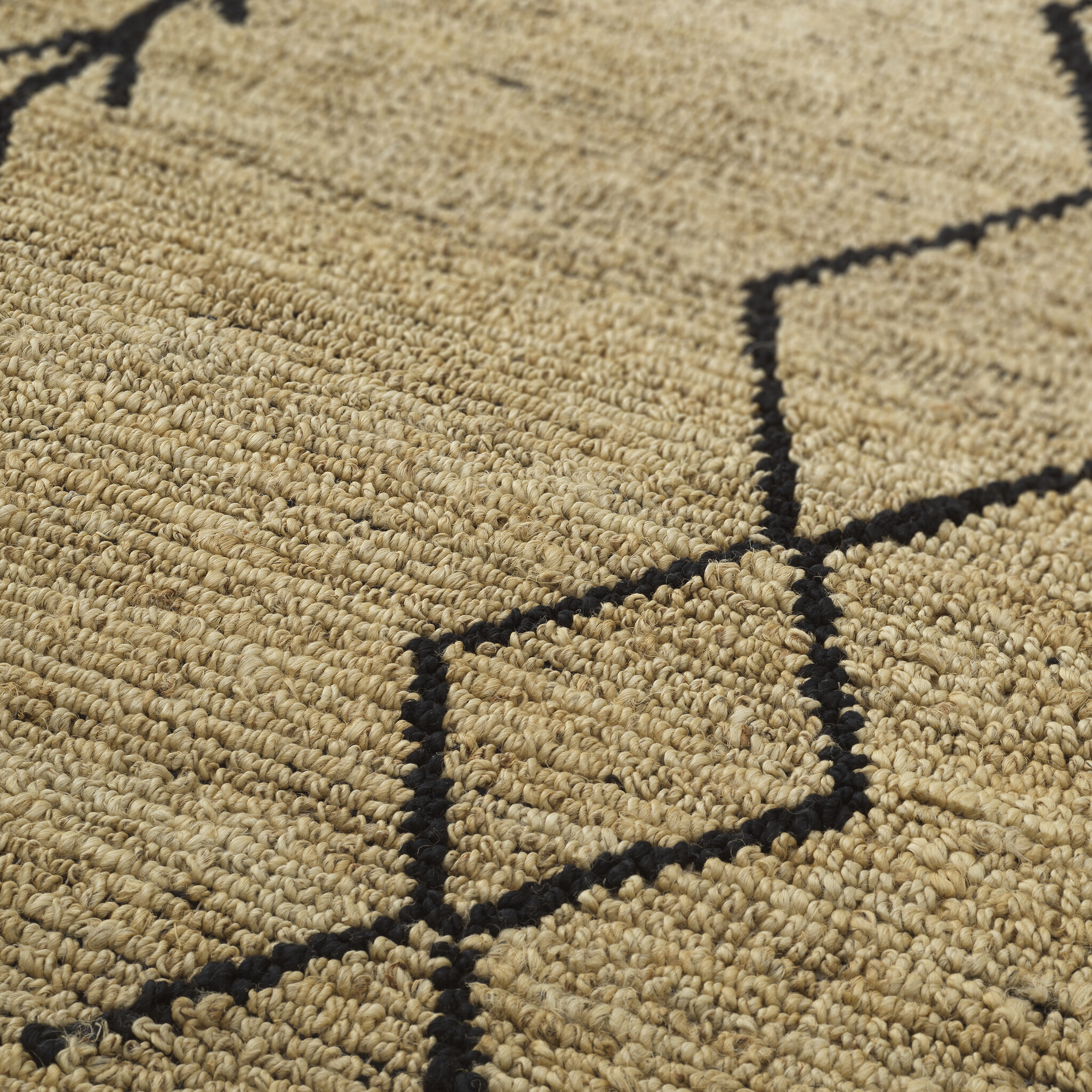 The Thornfield Rug combines natural jute fibers with a refined palette of beige and black, creating a bold yet balanced statement.
