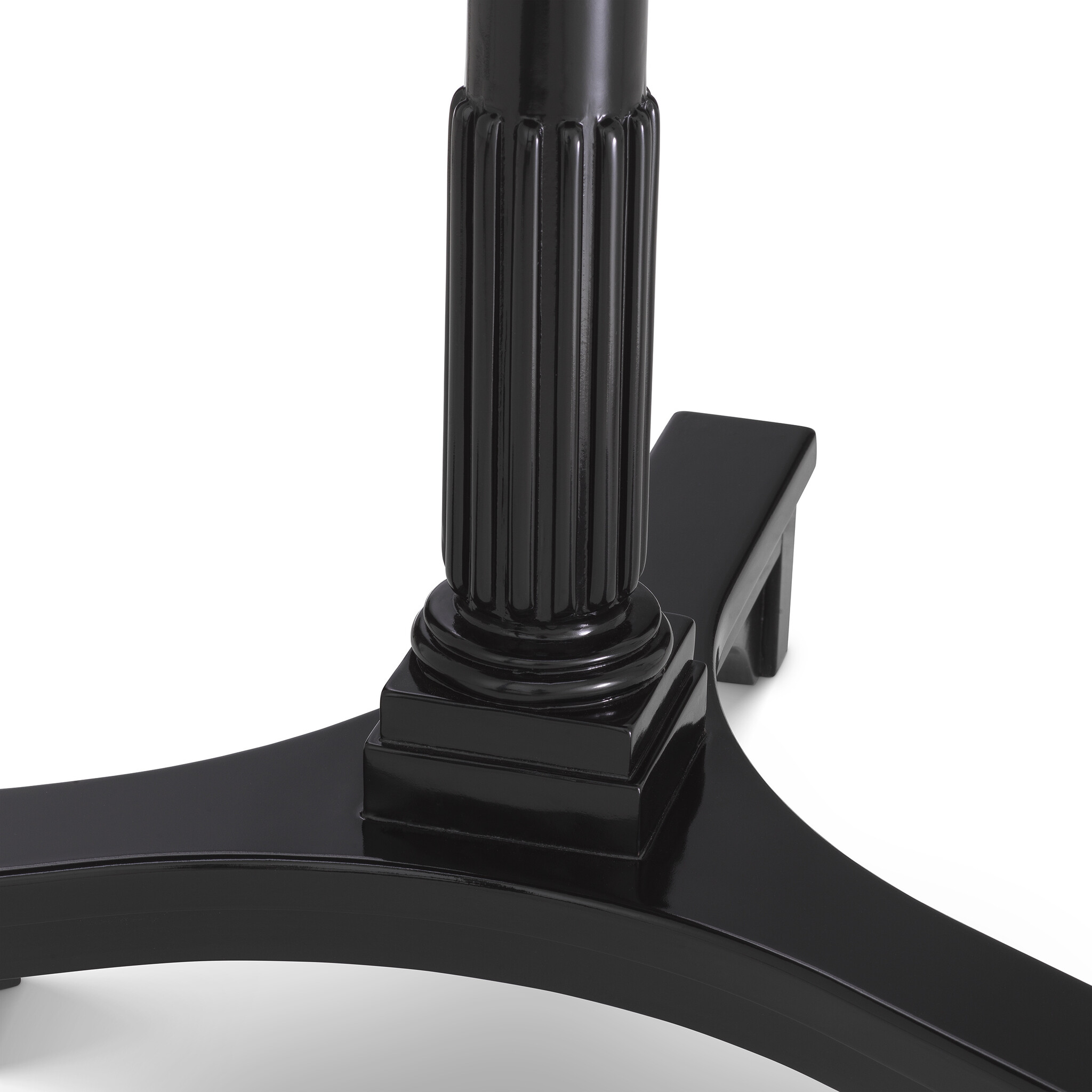 Featuring a pierced gallery top and a fluted column base, this entirely black rendition echoes the graceful proportions and ingenious functionality of its historic predecessor. Though simplified in color, the table retains its timeless architectural elegance.
