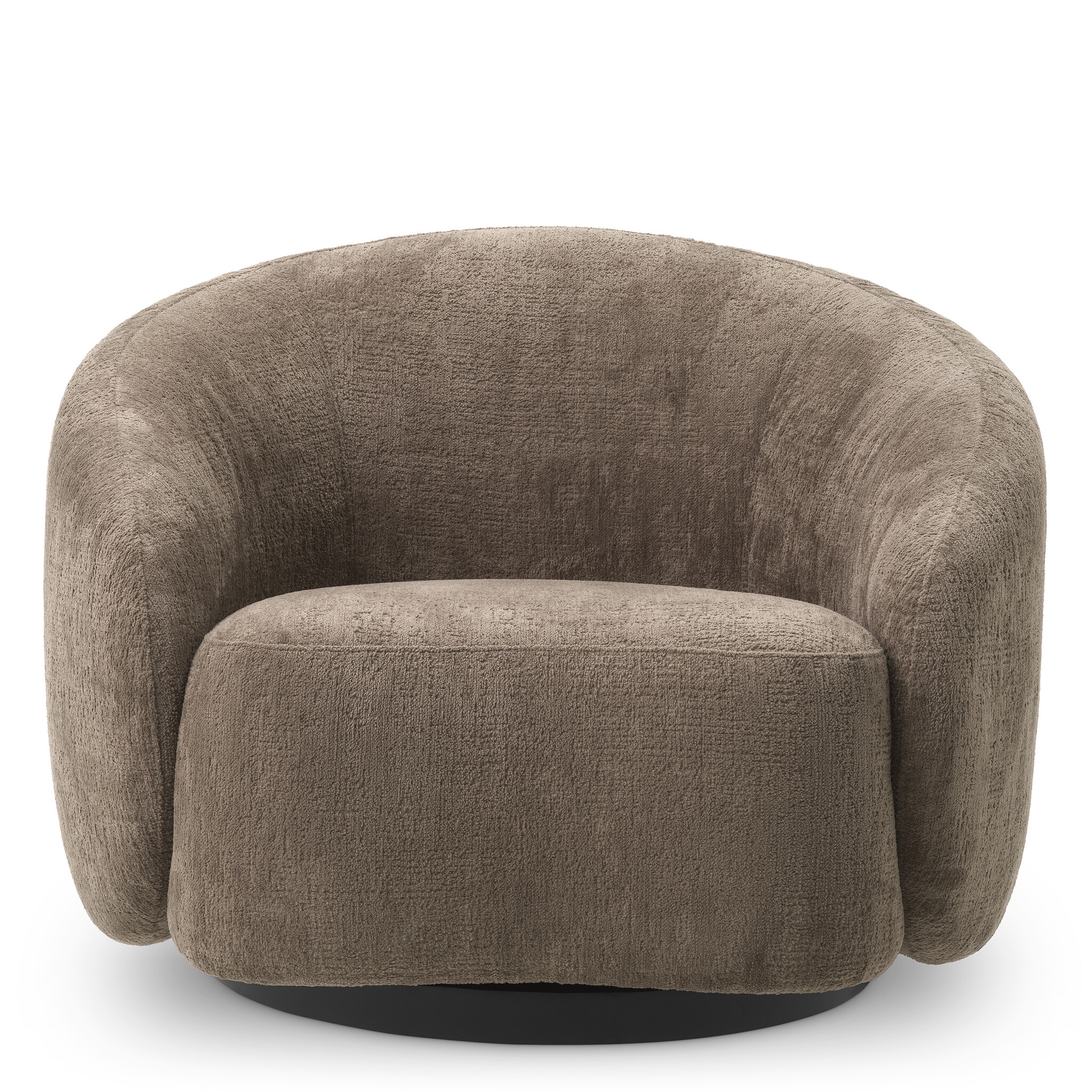 Discover the Swivel Chair Amore in avelin brown fabric, where rich, earthy tones envelop a sleek black base.