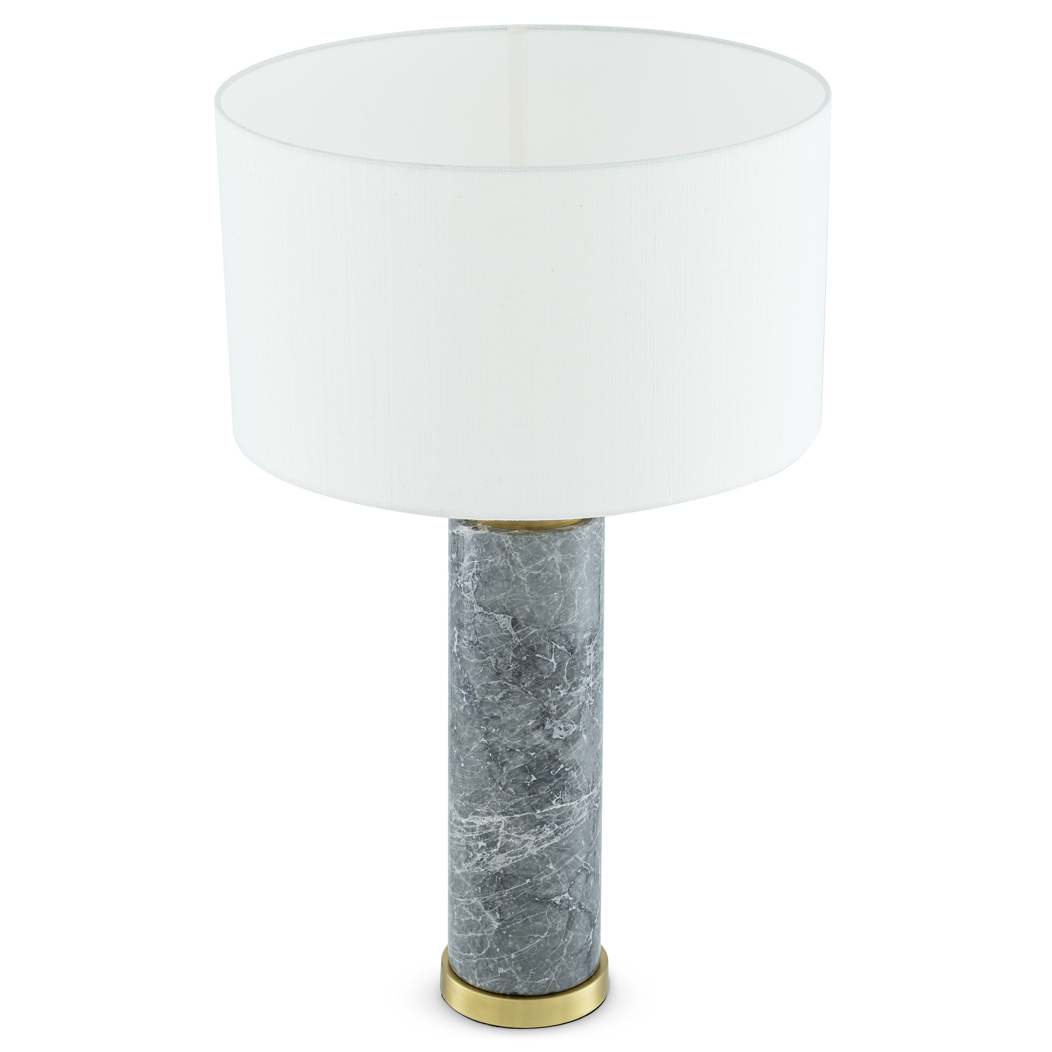 Table Lamp Lxry exudes sophistication. This lovely lamp has a cylindrical body of grey marble and a base and socket with antique brass finish. It is completed with an off-white drum shade to suit all décors. Ideal for hallways, living rooms, dining areas, bedrooms and more.