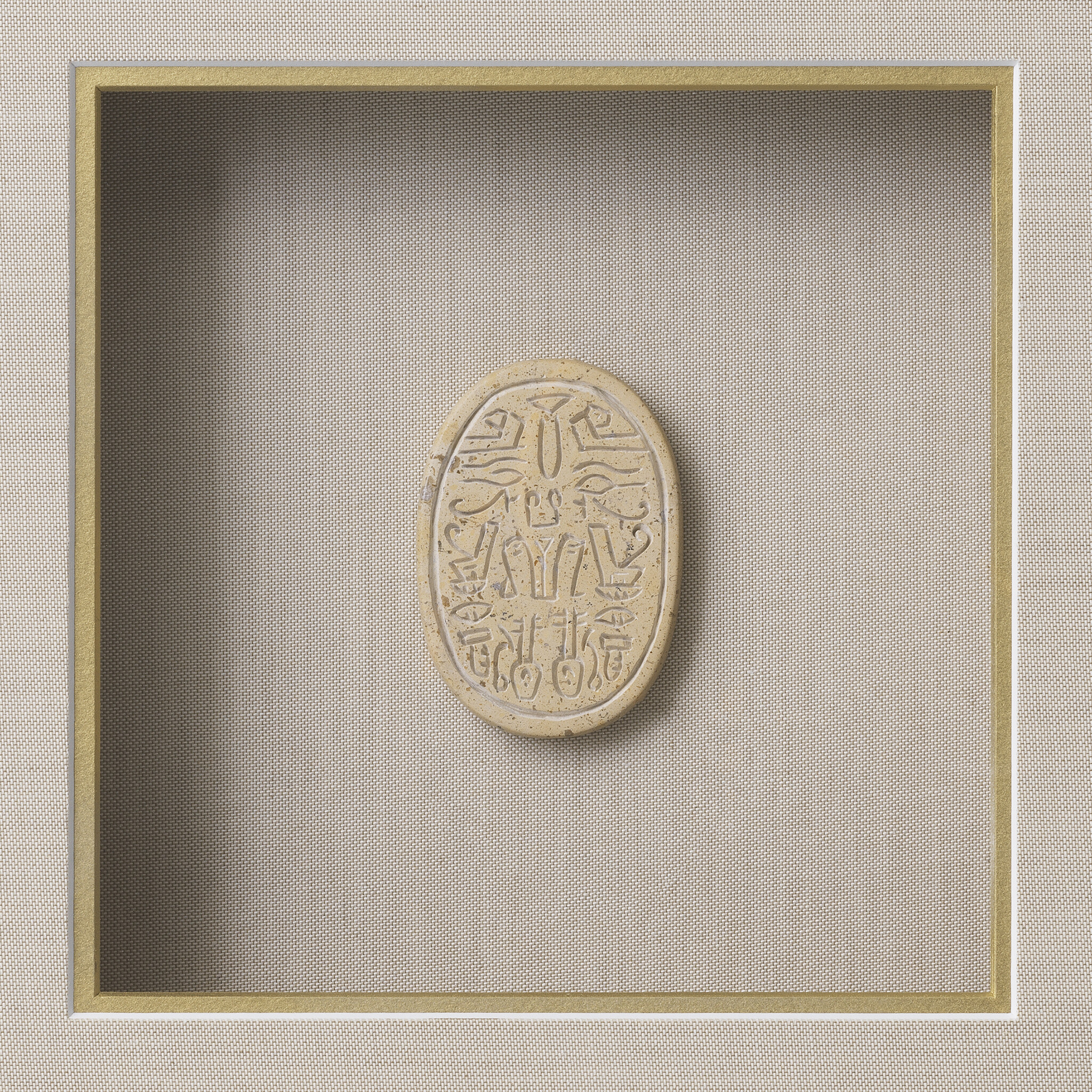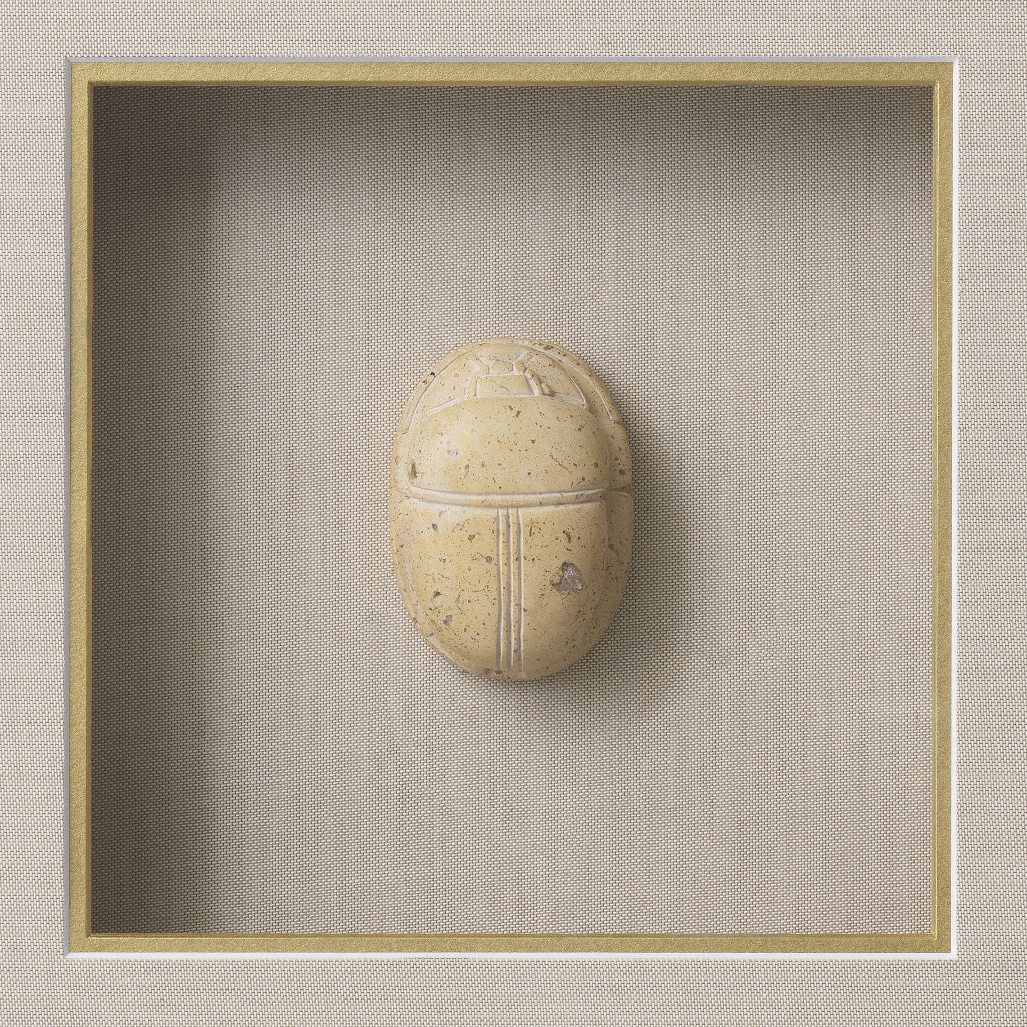 These works are named after the pharaoh Menes, the founder of Memphis, the region in which the Museum’s scarab was found. Scarabs were revered symbols of rebirth and protection, frequently used in temple ornamentation and royal artifacts. This wall set honors that heritage through contemporary craftsmanship and timeless symbolism.